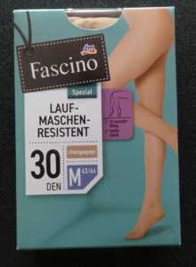 Müssen haltbare Strumpfhosen grundsätzlich teuer sein? Und gibt es sie nur im Internet? Die Antwort auf beide Fragen lautet: Nein. Wie die Strumpfhose „Fascino Spezial laufmaschenresistent 30 den“ der Drogeriemarkt-Kette DM zeigt, kann man schon für unter 5 € fündig werden. Genauer gesagt: für 4,45 €. Zu diesem Preis ist sie sowohl in den DM-Märkten als auch online erhältlich.